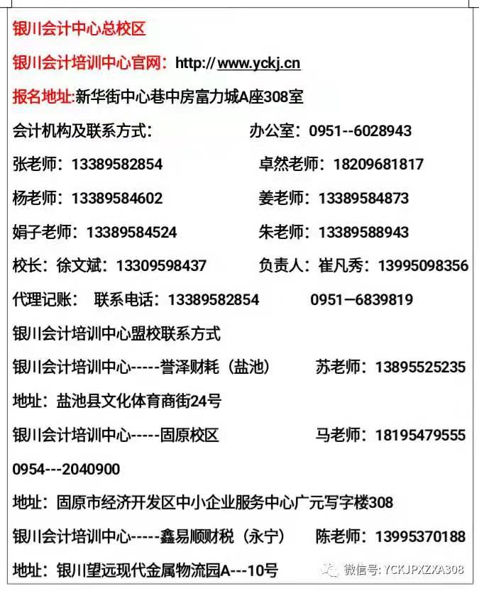 銀川會計培訓中心(新華街中心巷中房富力城A座308)